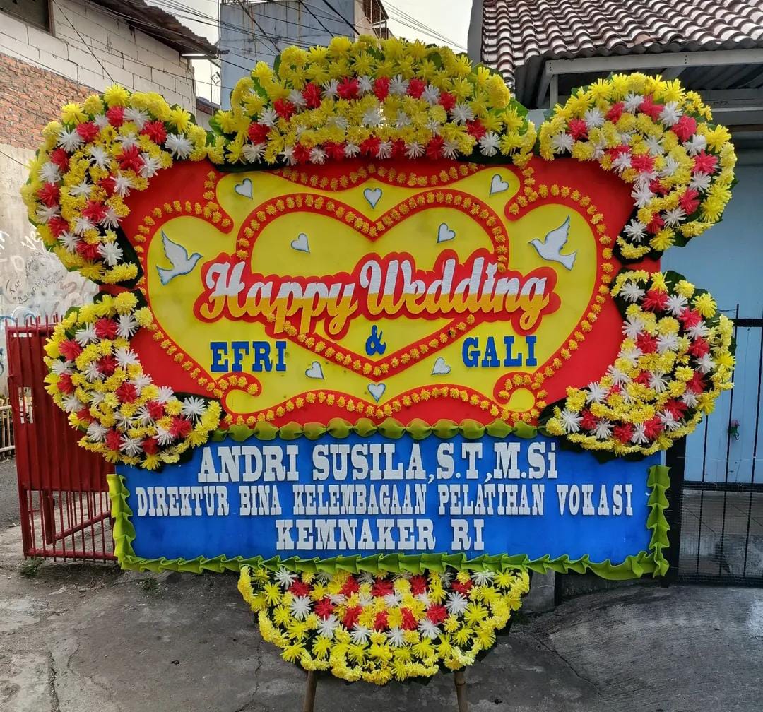 Karangan bunga papan untuk ucapan selamat, pernikahan, grand opening, maupun duka cita. Tersedia berbagai ukuran dan desain yang bisa disesuaikan dengan kebutuhan Anda.